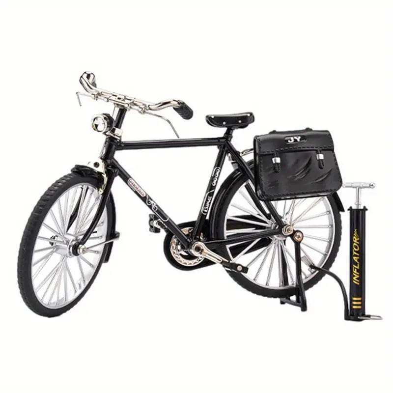 Name: Realistic Bike Model Material: Alloy Size: about 20.5*11.5cm/8.07*4.52inch Color: Black/green Recommend age:0-12 years old Packing List:1 set Retro Bicycle Model Scale