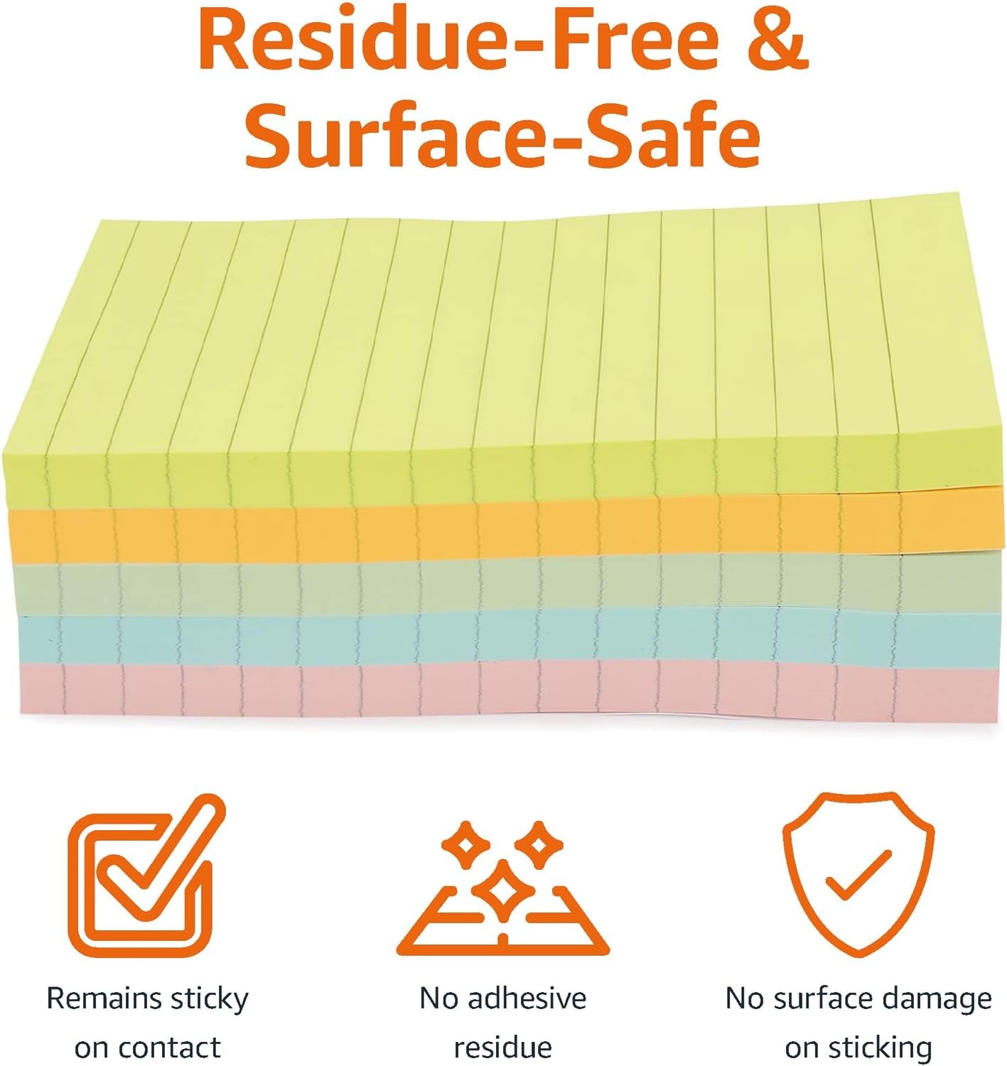 ID.GLOBAL Basics Lined Square Sticky Notes, 4 x 6-Inch, Pack of 5, Assorted Colors