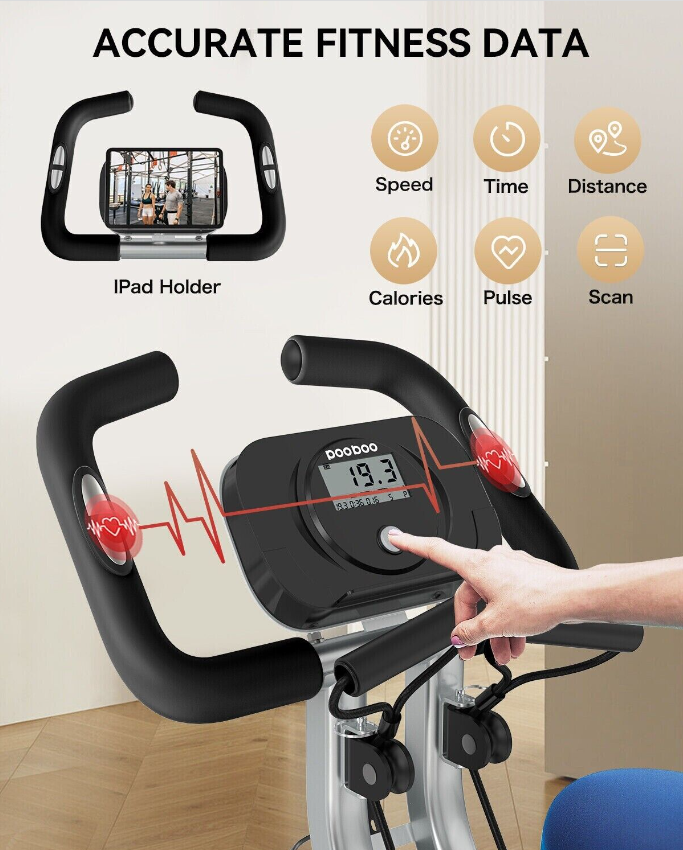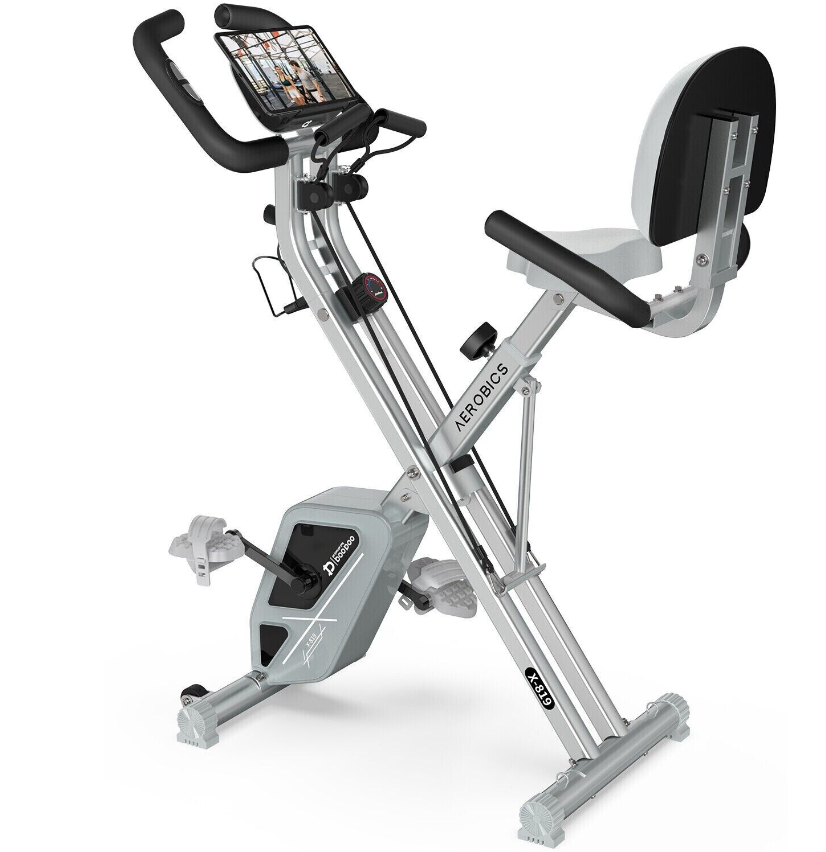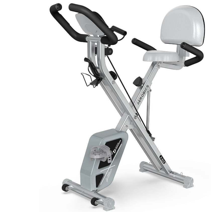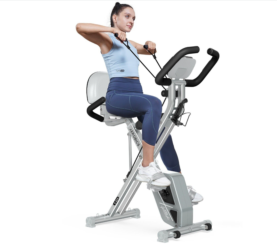 EIGHT RESISTANCE LEVELS, COMFORTABLE PADDED SEAT, Easy To Move, 3 IN 1 FOLDING EXERCISE BIKE, 8 LEVELS RESISTANCE & QUITE SMOOTH, HOME STATIONARY BIKE WITH ARM WORKOUT, LCD MONITOR & PHONE HOLDER, Quiet & Smooth, Comfortable Seat & Adjustable Height, Arm Resistance Band, 2 Dumbbells, Adjustable Seat, Body-Fat Analysis, Bottle Holder, Calorie Monitor, Foldaway/Compact, Heart Rate Monitor, LCD-Display, Magnetic Brake System
