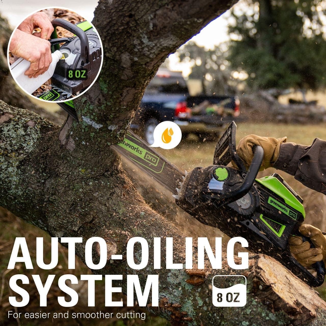 • AUTOMATIC OILER: Ensures chain stays lubricated for longer chain life, and the transparent oil window lets users know when to refill the reservoir