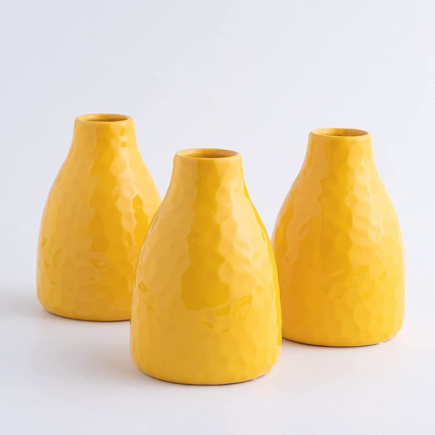 Home Living Room Decor Set of 3 Small Yellow Stoneware Ceramic Flowers Vase