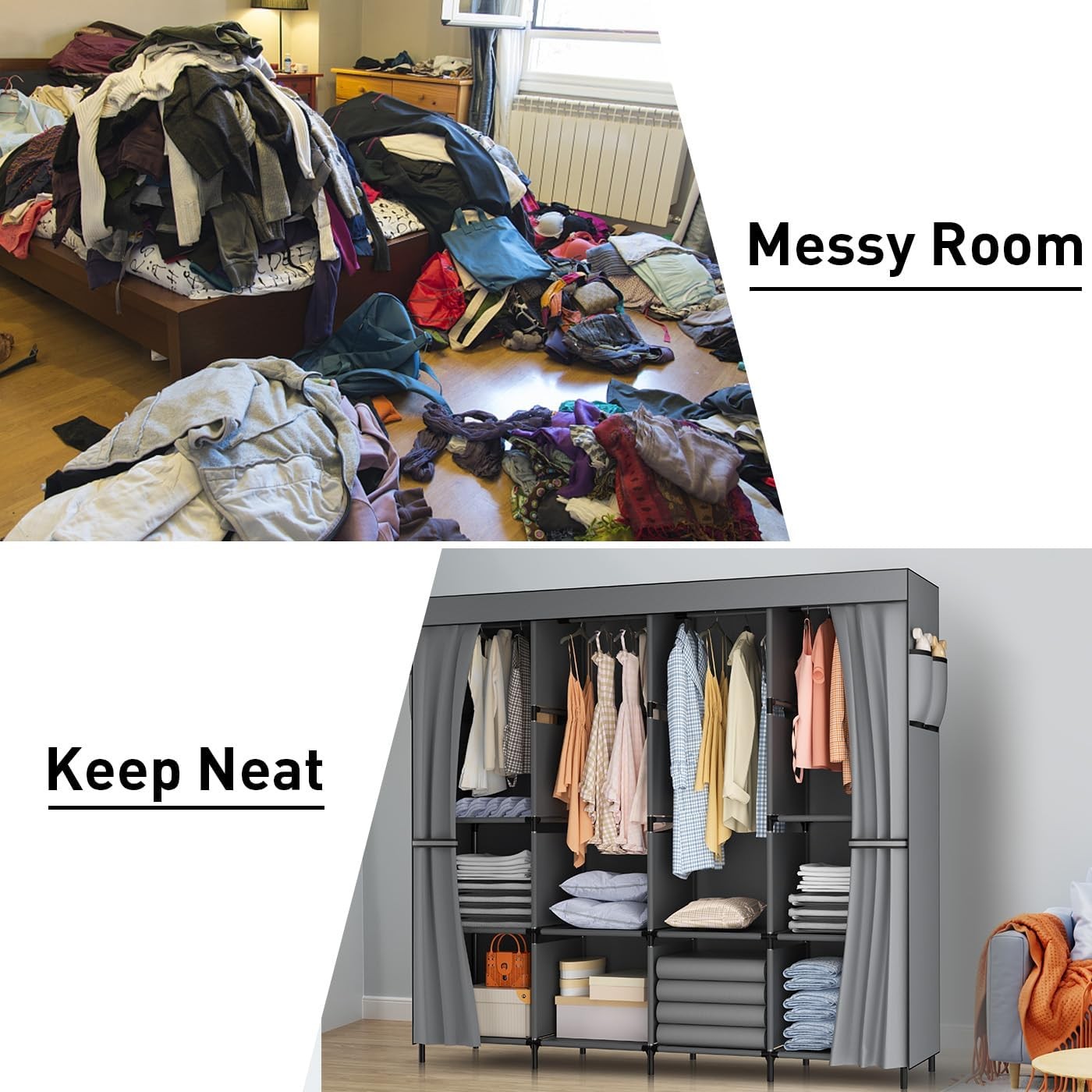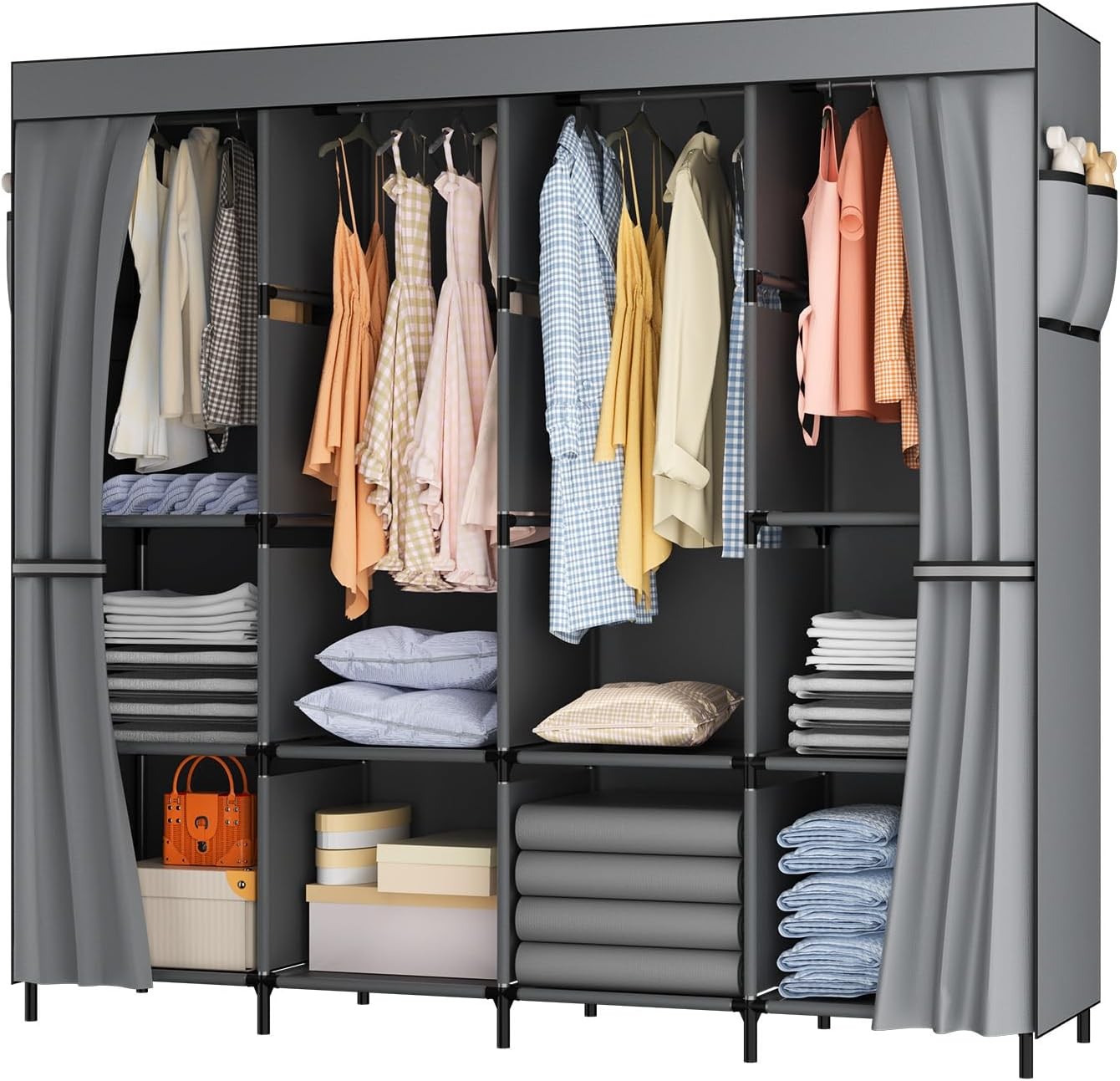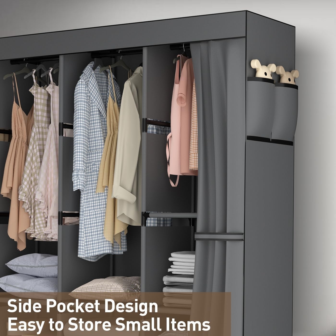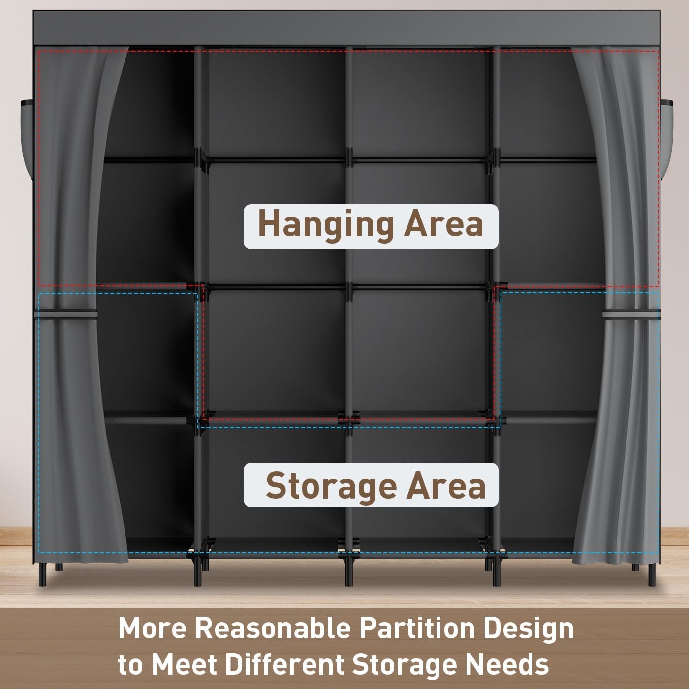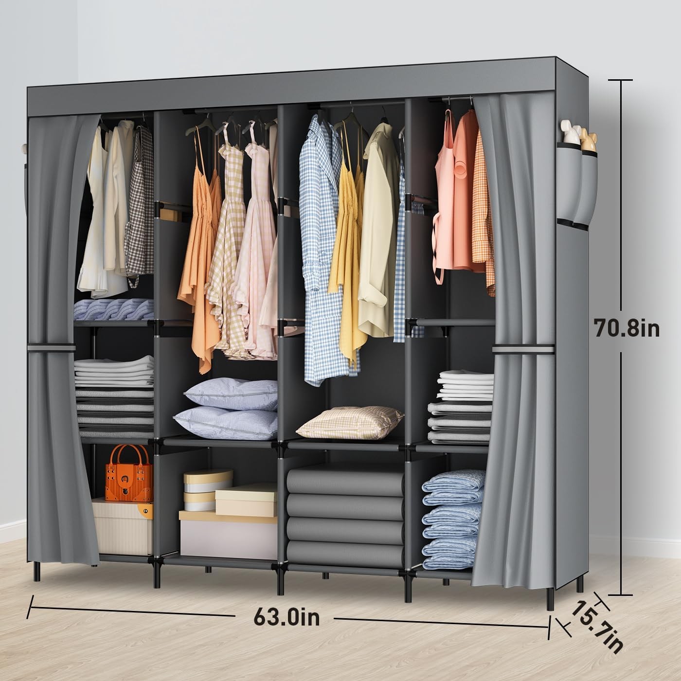 The portable closet for bedroom measures 63 inches long x 15.7 inches wide x 70.8 inches high, providing generous storage space and great load capacity. Meet your all aspect storage need.