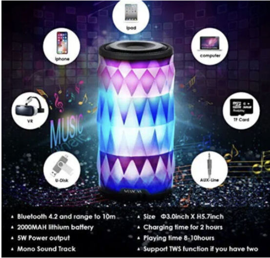 MIANOVA LED Bluetooth SpeakerNight Light Changing Wireless Speaker Portable W...