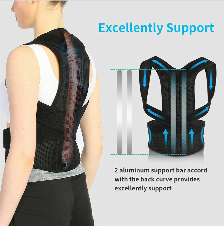 NEOPRENE POSTURE CORRECTOR BAD BACK LUMBAR SHOULDER SUPPORT BELT BRACE ADJUST