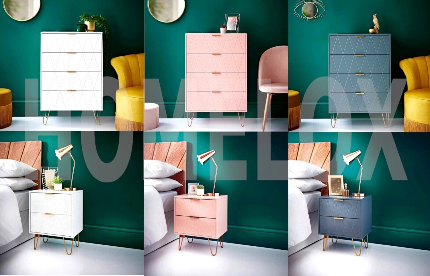 NEW 4 Drawer Chest & 2 Drawer Bedside Table With Gold Legs Bedroom Furniture