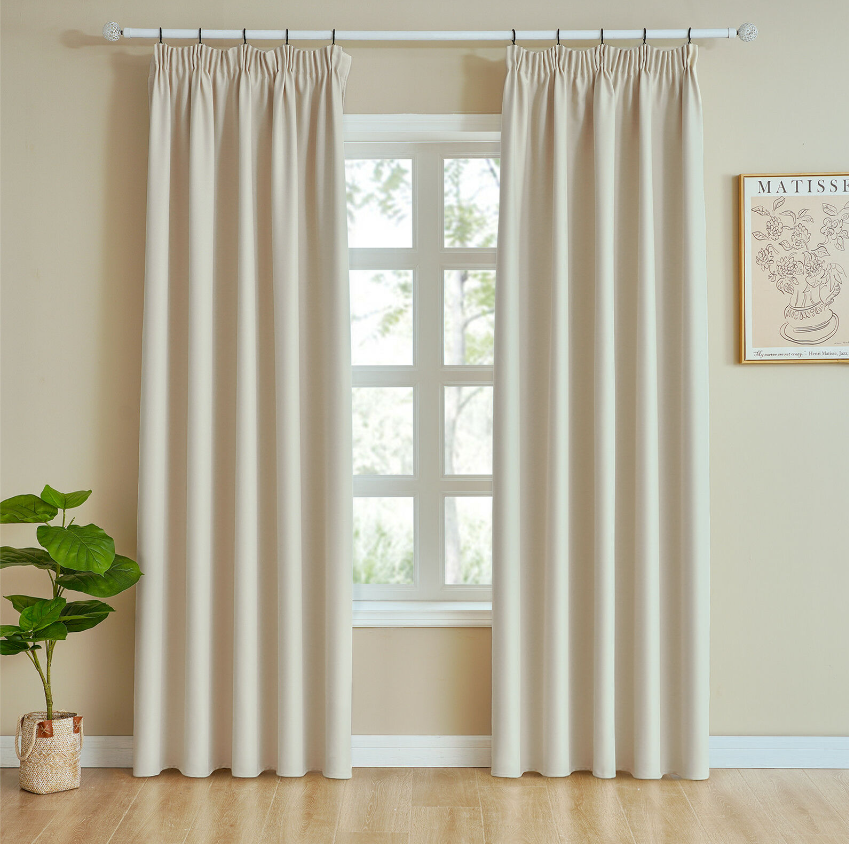 Pencil Pleat Thermal Thick Blackout Curtains Pair Ready Made Eyelet Ring top