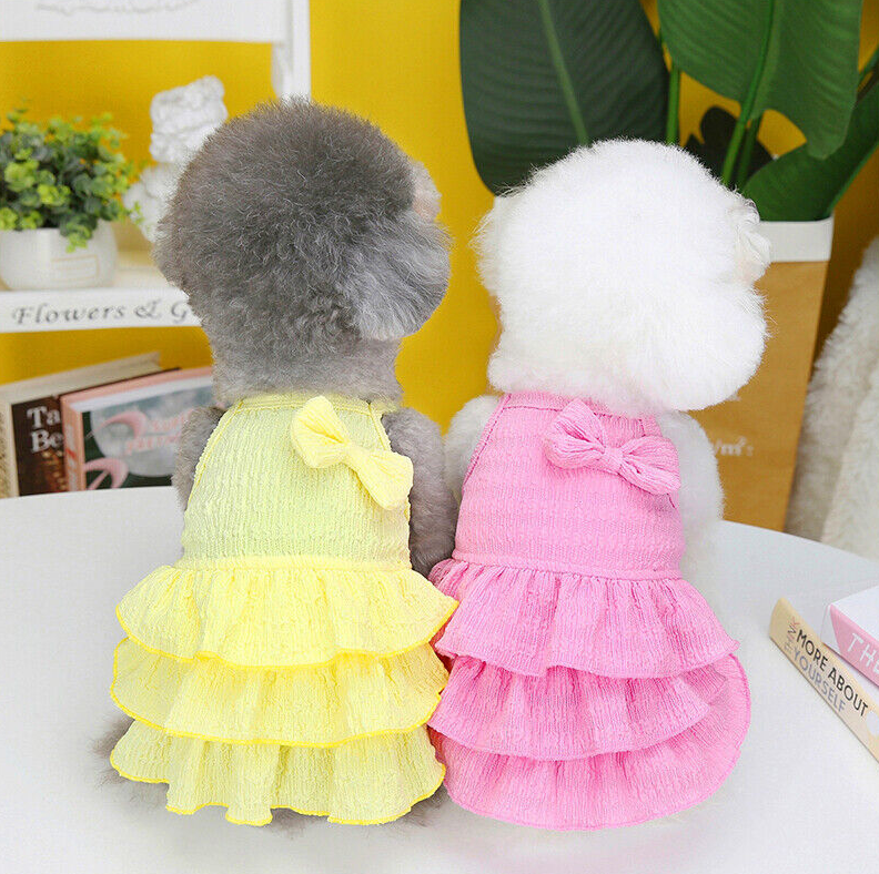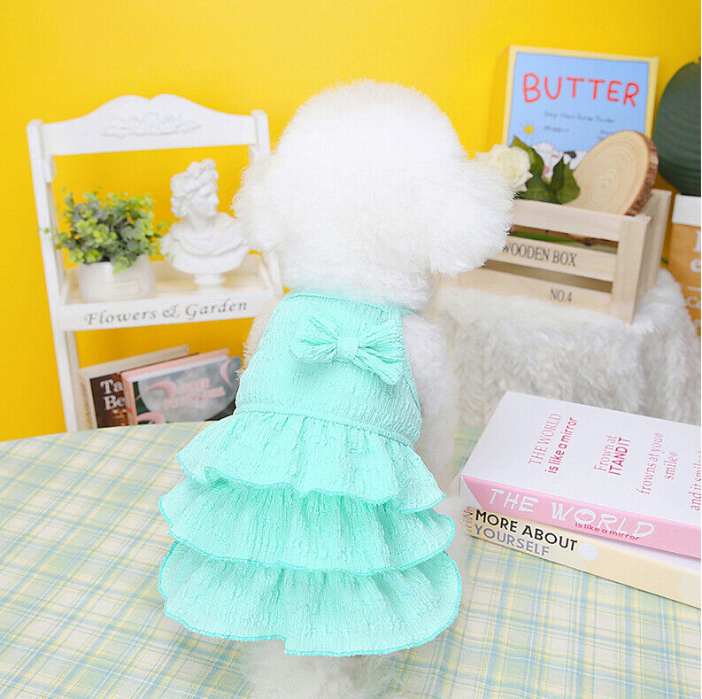 Pet candy color layered skirt, polyester material, comfortable and skin friendly fabric. Candy color, fresh and sweet. A variety of different colors are available.