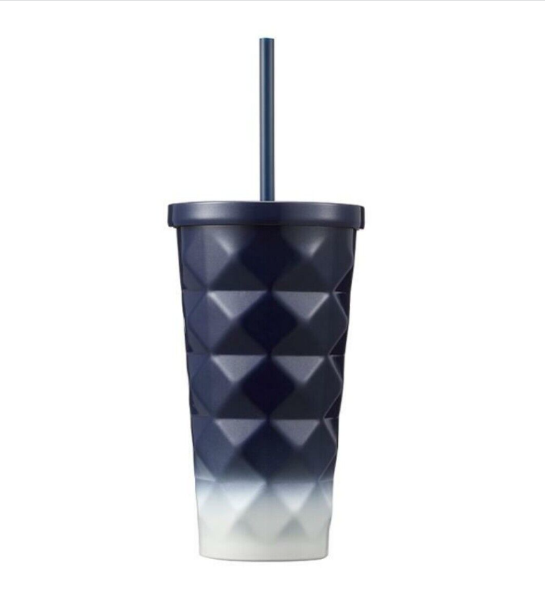 A 473ml stainless steel tumbler for cold drinks with a gradation blue color scheme. This 473ml stainless steel tumbler for cold drinks with a gradation blue color scheme. It has a three-dimensional body shape and has an excellent grip, and it is convenient to clean with a wide mouth. This product contains straw, suitable for enjoying cold drinks, and the stainless steel material has excellent cooling effect. Accessories cannot be purchased separately, so be careful when storing and handling them.