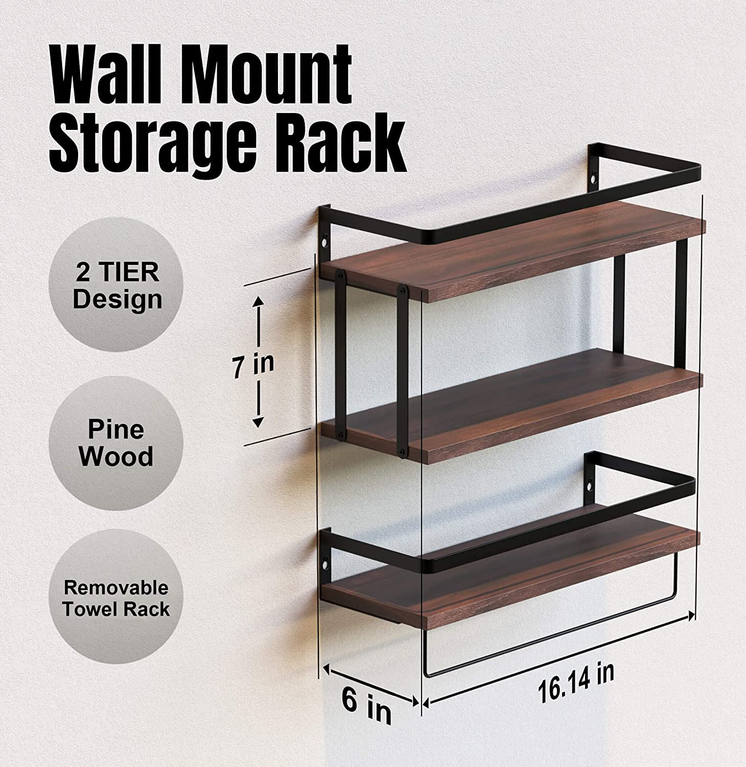 Wall Mounted Floating Shelves Rustic Wood Shelf Metal Frame Extra Storage Rack