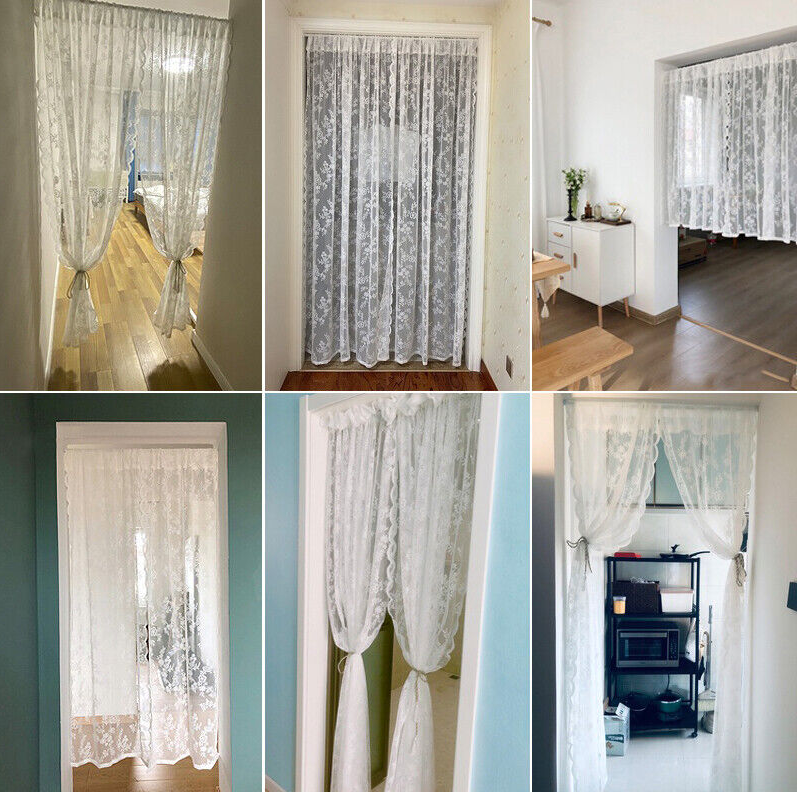 White Lace Sheer Panel Curtains Rod Pocket Window Tulle Voile Curtain Home Decor