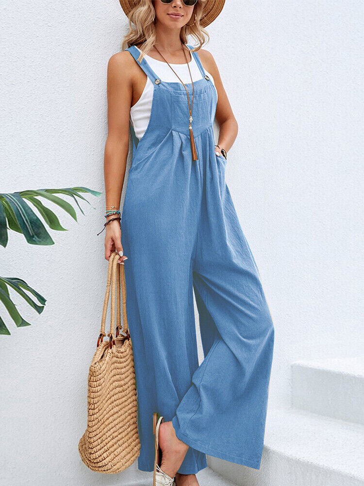 Women's Bib Overalls Sleeveless Loose Wide Leg Jumpsuits Rompers with Pockets