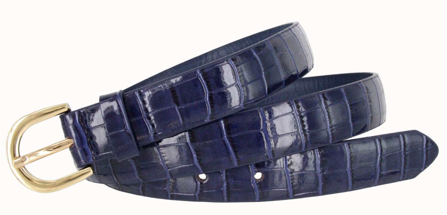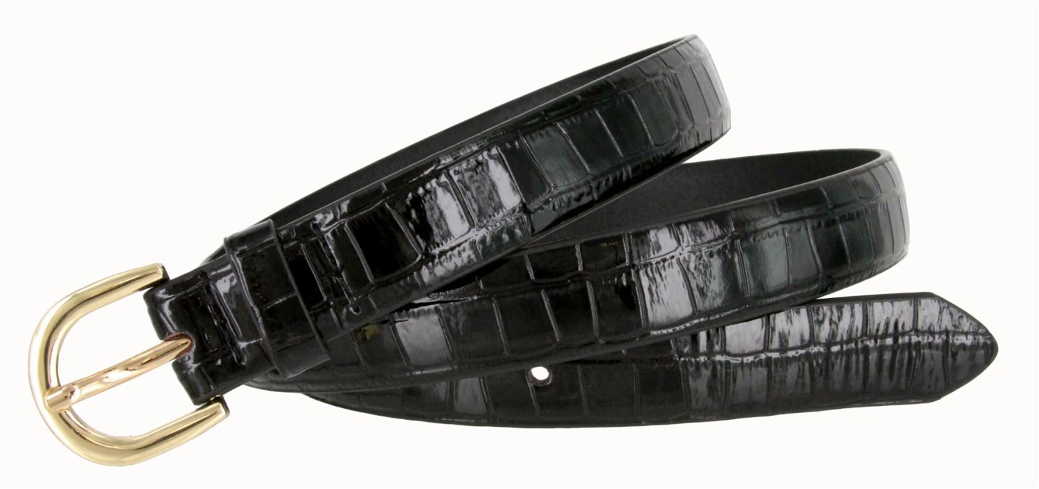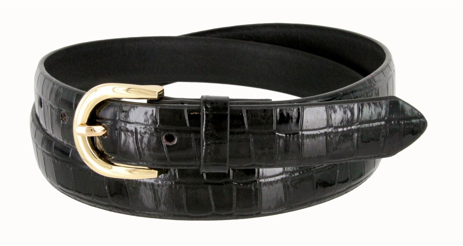 Women's Skinny Thin Alligator Embossed Genuine Leather Belt 1" (25mm) Wide